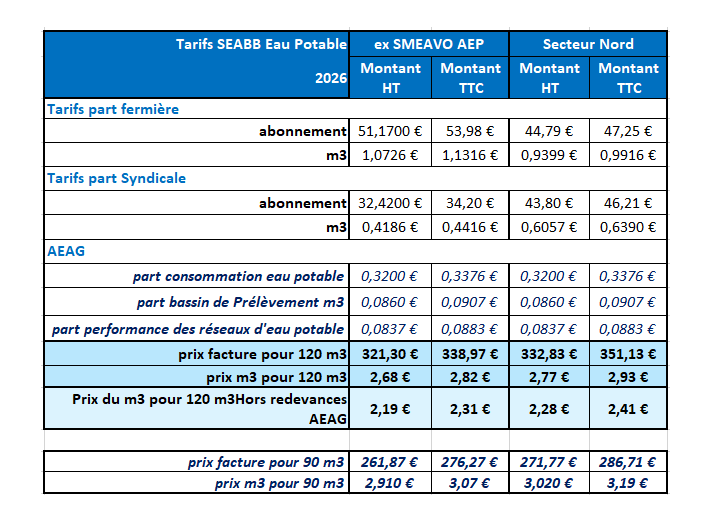 Tarifs Alimentation en Eau Potable